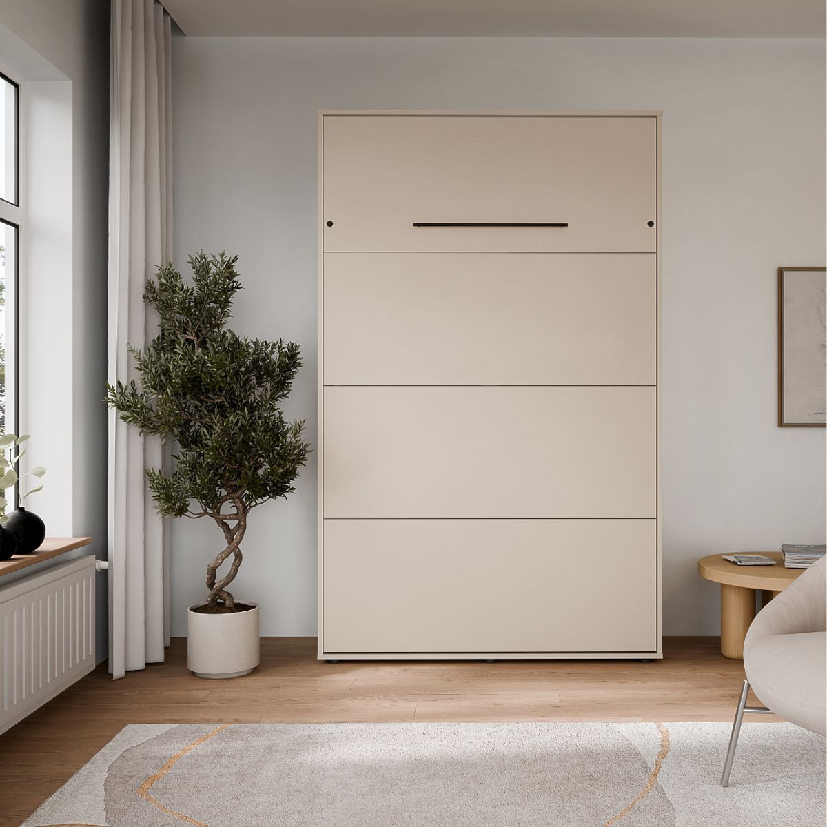 Patul pliabil VERTO 120x200 este un pat vertical elegant ascuns într-un dulap, care permite crearea unei zone de dormit confortabile în doar câteva momente, chiar și într-un spațiu mic. Ideal pentru cei care doresc să combine confortul cu utilizarea maximă a spațiului.