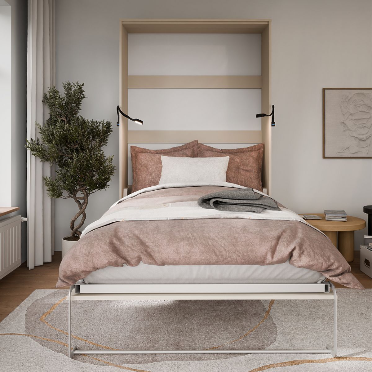 Patul pliabil VERTO 160x200 este un pat vertical elegant, ascuns într-un dulap, care permite crearea rapidă a unei zone de dormit confortabile chiar și în spații mici. Ideal pentru cei care doresc să combine confortul cu utilizarea maximă a spațiului.