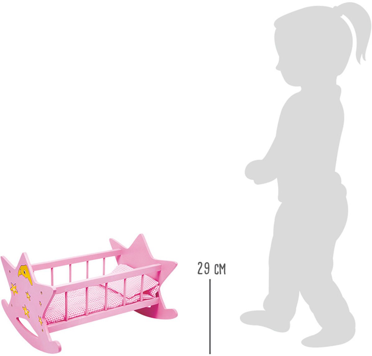 Atenție tuturor observatorilor de stele. Cu acest leagăn minunat pentru păpuși din lemn robust, copiii se leagănă cu păpușile lor în visele lor. Partea din față și din spate a leagănului are un design de cer înstelat. Principalele caracteristici: susține jocul activ și antrenează abilitățile sociale, construcție stabilă, prelucrare de calitate, potrivit pentru grădinițe