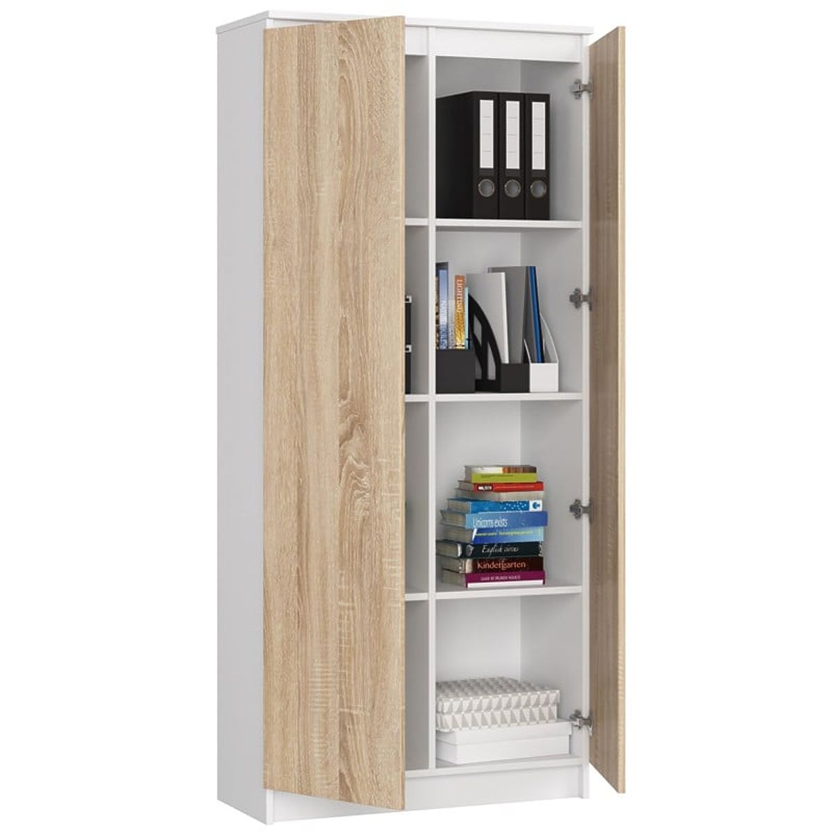 Banaby.ro » Rafturi, dulapuri etajere și biblioteci / Rafturi pentru copii / BIBLIOTECĂ ÎNCHISĂ R80 2D 8P CLP ALBĂ / SONOMA
