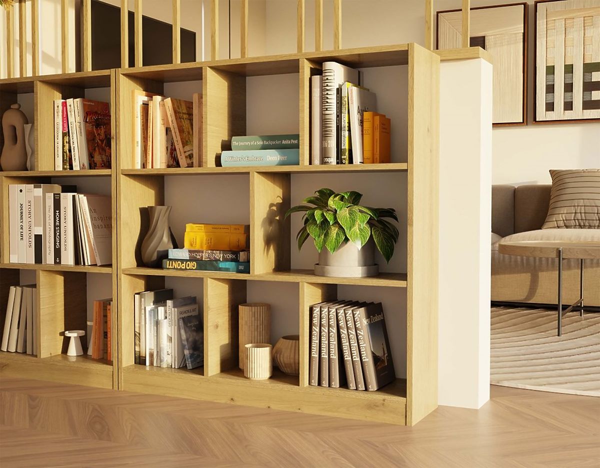 - 8 rafturi/compartimente funcționale – ideale pentru cărți, decorațiuni sau cutii de depozitare.