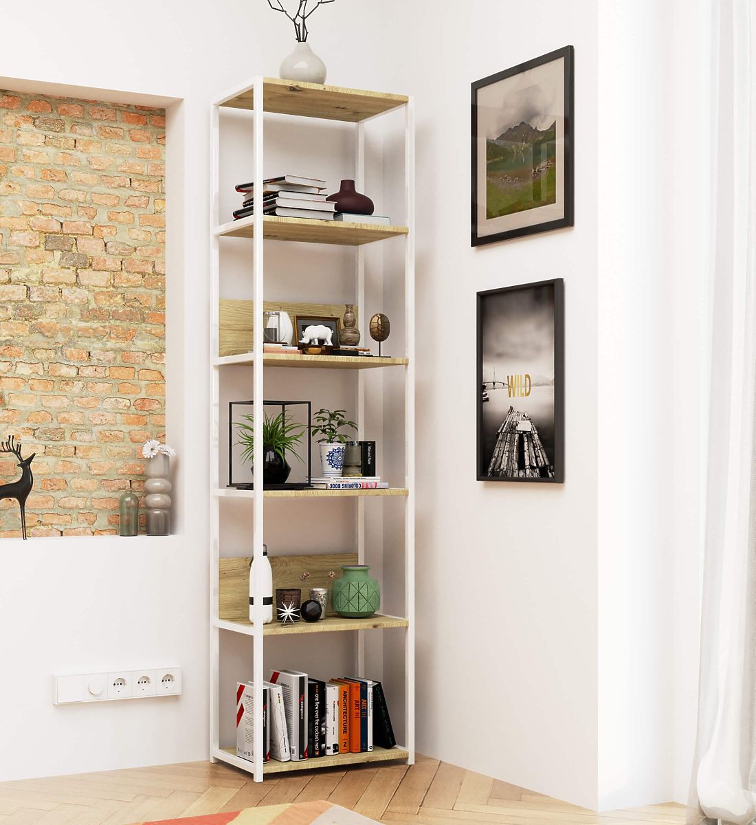 Banaby.ro » Rafturi, dulapuri etajere și biblioteci / Rafturi pentru copii / Raft metalic loft 50 cm - alb-stejar artisan - 6 rafturi