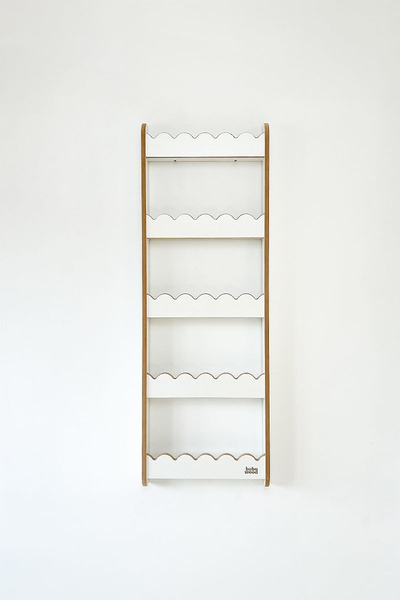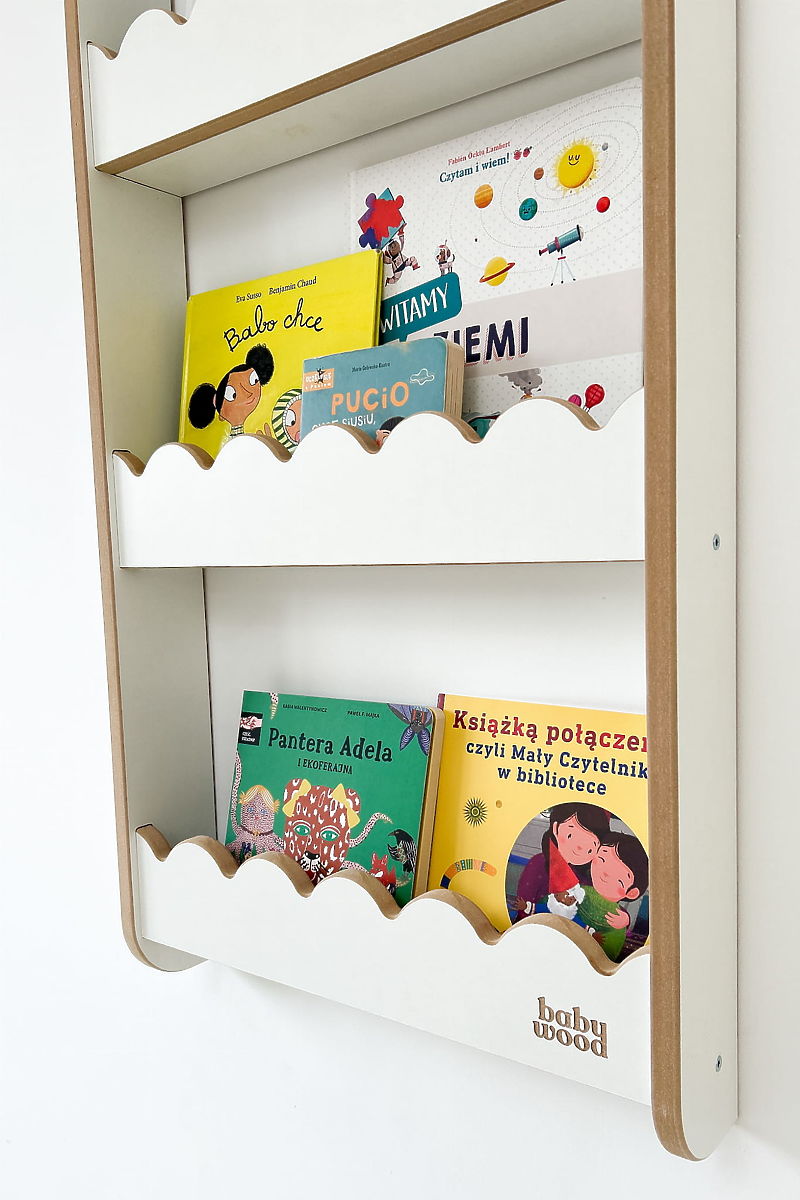 Raftul WAVE L de culoare albă este o bibliotecă practică și decorativă de perete, care ajută la menținerea ordinii în camera copilului, fără a ocupa spațiu pe podea. Este ideal pentru cărți, jucării mici, fotografii sau alte obiecte de valoare ale copilului dumneavoastră. Datorită montării pe perete, podeaua rămâne liberă pentru joacă și mișcare, ceea ce este apreciat de copii și părinți. Designul elegant și funcțional al raftului permite depozitarea și expunerea ușoară a lucrurilor preferate ale copilului. Marginile rotunjite și finisajul de calitate asigură o utilizare sigură chiar și pentru copiii mici.