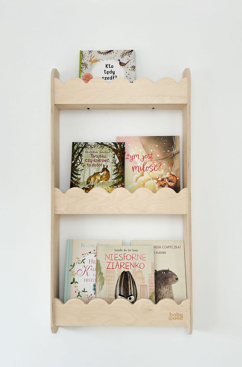Raft de perete WAVE M în culoare naturală este o bibliotecă practică și decorativă pentru perete, care ajută la menținerea ordinii în camera copilului fără a ocupa spațiu pe podea. Este ideal pentru cărți, jucării, decorațiuni sau obiecte mici ale copilului dumneavoastră. Montarea pe perete permite eliberarea podelei pentru joacă și alte activități. Aspectul natural și prelucrarea de calitate a raftului adaugă un accent primitor camerei copilului. Marginile rotunjite și suprafețele netede asigură o utilizare sigură chiar și pentru copiii mici.