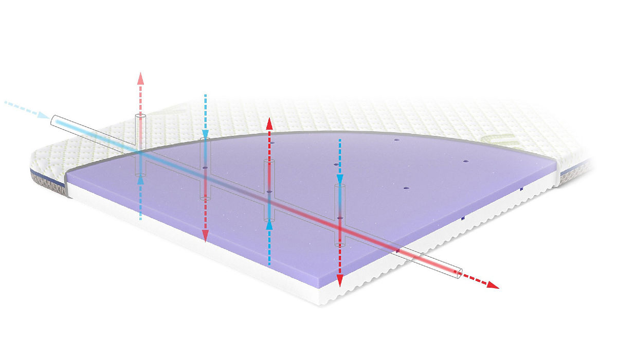 Plasa de acoperire și canalele verticale și orizontale sunt complet integrate - datorită acestui fapt se creează o rețea extinsă și salteaua respiră.