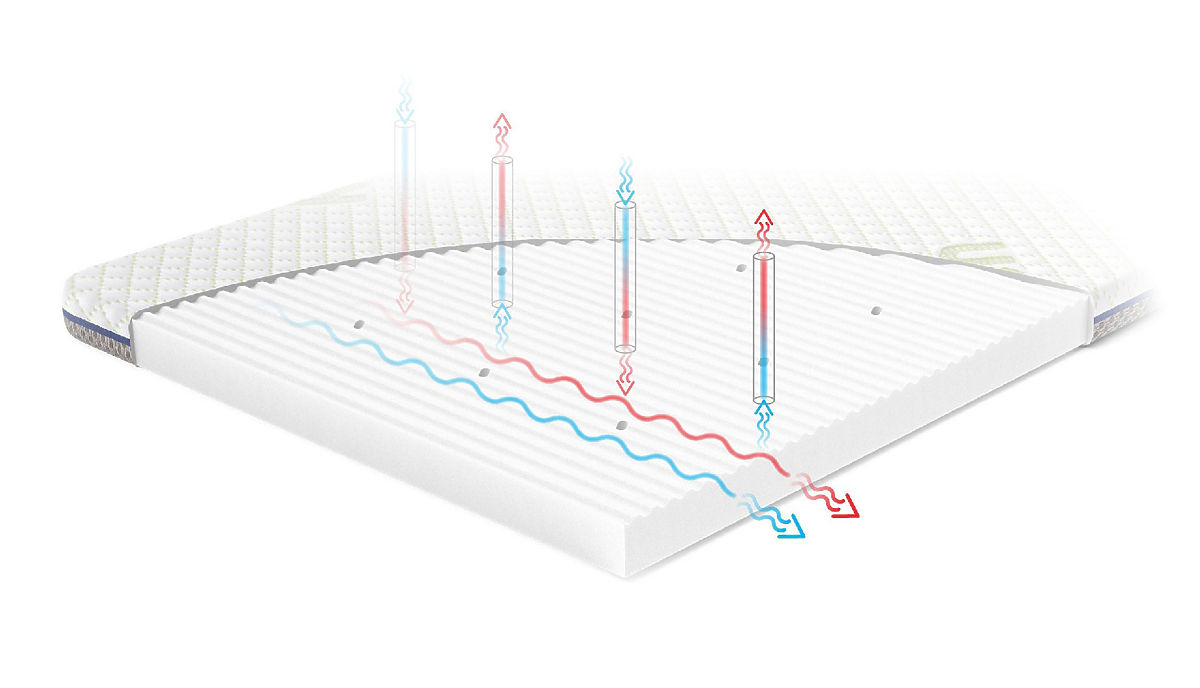 Plasa de acoperire și canalele verticale și orizontale sunt complet integrate - datorită acestui fapt se creează o rețea extinsă și salteaua respiră.