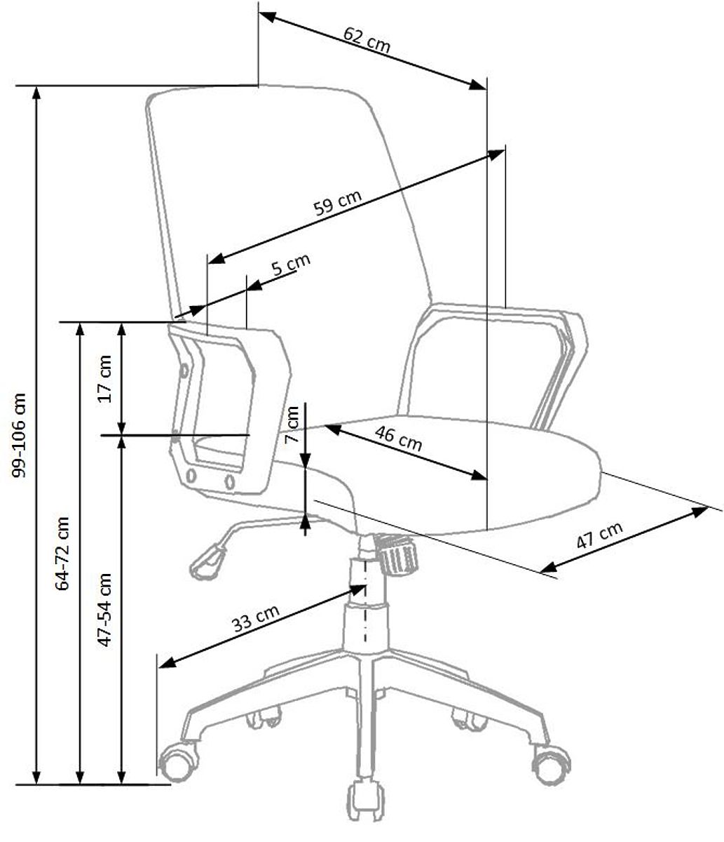 Scaunul are o construcție solidă din polipropilenă întărită albă și este tapițat cu material de tapițerie respirabil. Are un mecanism TILT, datorită căruia poți regla cu ușurință înălțimea scaunului folosind cricul de gaz. Scaunele confortabile sunt garantate de cotiere practice și cinci roți din plastic.