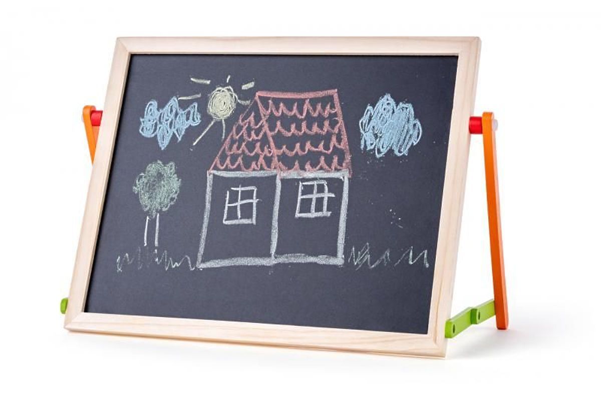 Un alt produs fenomenal de la WoodyLand. Tablă magnetică și de cretă uimitoare este un produs care combină distracția neobișnuită cu învățarea practică. Pe o parte, copilul poate crea imagini frumoase, iar pe cealaltă poate crea propriile serii de litere sau numere. O parte a jucăriei este o tablă pe care se poate scrie și desena cu cretă, în timp ce cealaltă parte este o tablă magnetică pe care se pot atașa litere magnetice, cifre și semne, care sunt de asemenea incluse în set. Se poate scrie pe ea cu un marker special pentru ștergere uscată, care poate fi șters oricând. Tablă are un suport solid, datorită căruia poate fi așezată oriunde, de exemplu, pe podea sau pe o masă.