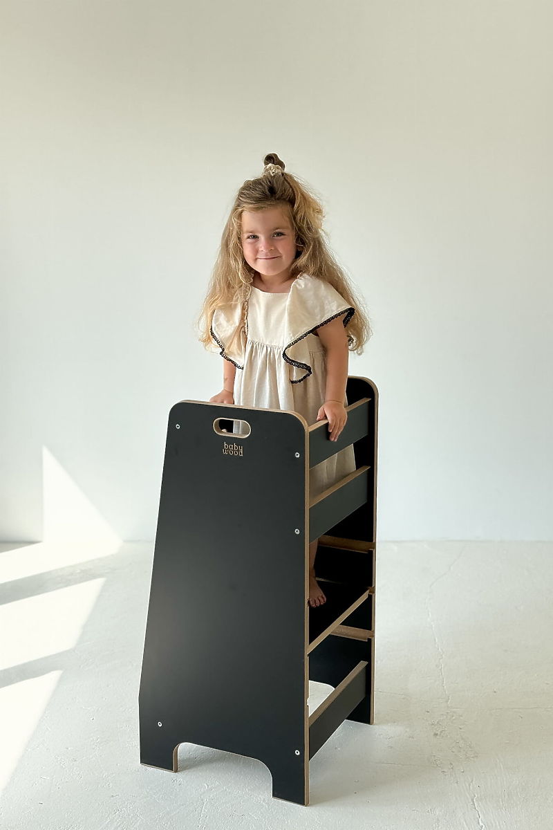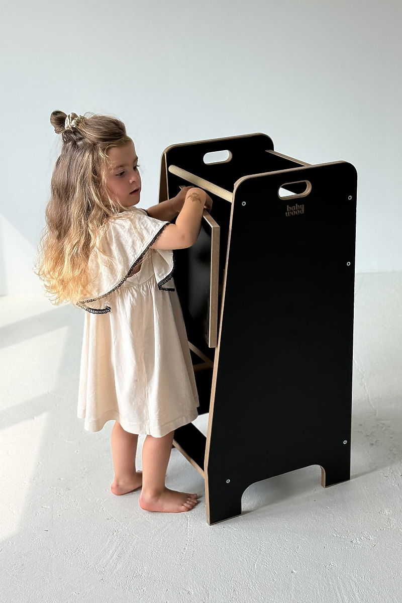 Turn de învățare negru pentru copii, sigur și practic în bucătărie. .. mai mult